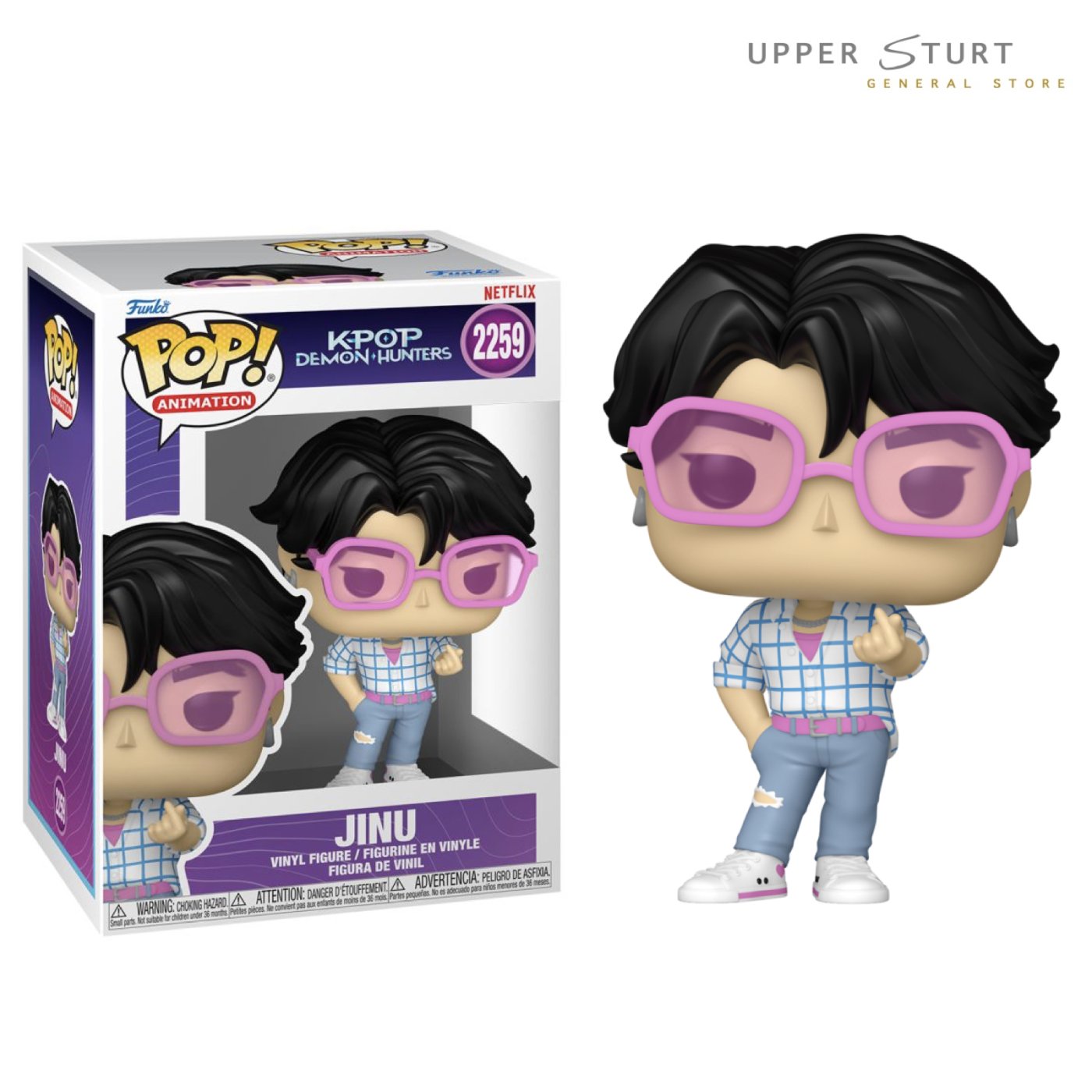 K-POP Demon Hunters Jinu 2259 Funko Pop Vinyl. Expert and careful packaging (packed in a box within a box plus bubble wrap) to ensure both your New Pop! Vinyl and the Pop Box arrive in excellent condition. Brand new. Never opened.